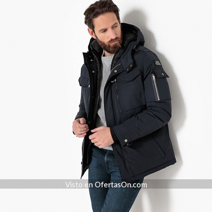 Aquí tienes una de las novedades top en abrigos de La Redoute: parka semilarga con capucha, cuello alto y cierre con cremallera.