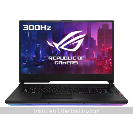 Un portátil Asus con procesador a 2,30 GHz, 32 GB de memoria RAM, disco duro SSD de 1 TB, tarjeta gráfica NVIDIA GeForce RTX de 8 GB de VRAM y pantalla de 17,3 pulgadas Full HD 300Hz antirreflejos. Un portátil que vale para todo: gaming, ofimática y aplicaciones gráficas, ideal para trabajo.
